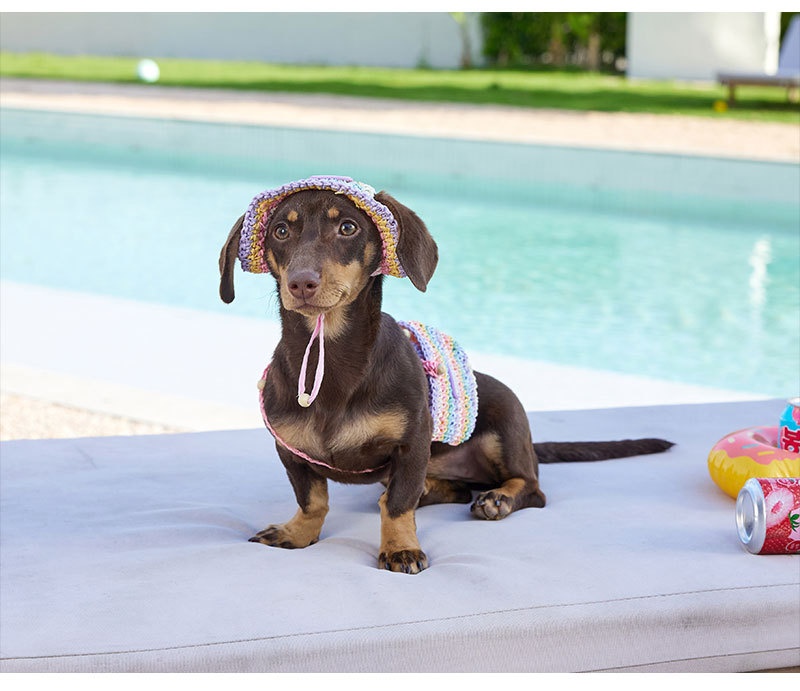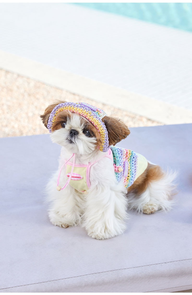 Woven Sun Hat Summer Small Dog Yorkshire Bichon Vacation Style Travel Bag