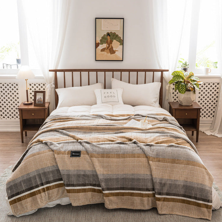 KTX-048851 Milk Velvet Thickened Yarn-Dyed Striped Flannel Blanket for Autumn and Winter