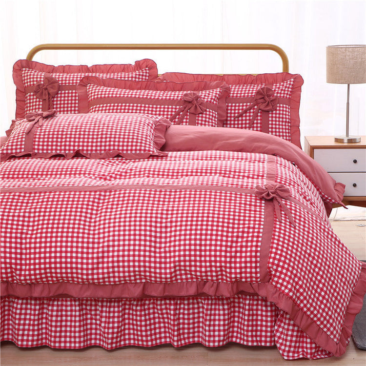 KTX-538515 European-Style Pure Cotton Bed Linen Set with Bed Skirt – Four-Piece Collection