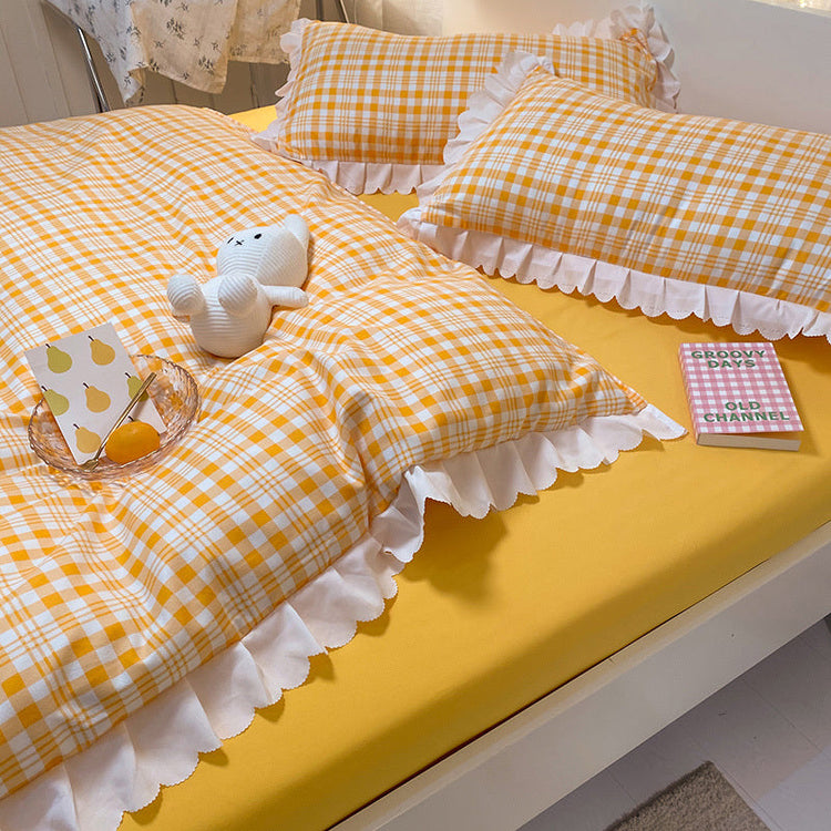KTX-348691 Nordic Simple Plaid Cotton Four-Piece Bed Linen Set in Washed Cotton
