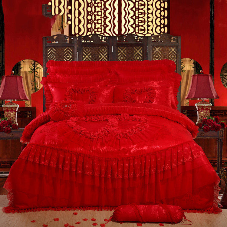 KTX-570515 Jacquard Wedding Lace Embroidery Quilt Set - Multi-Piece Cotton Bedding Collection