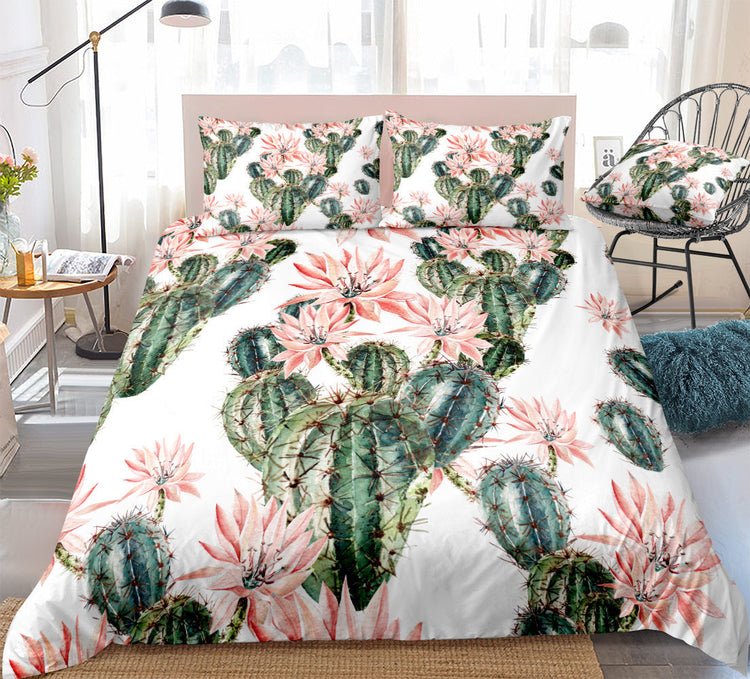 KTX-217619 Cotton Quilt Cover Set with Plant and Flower Pattern - Small Size (Duvet Cover, Bedsheet, Pillowcase)