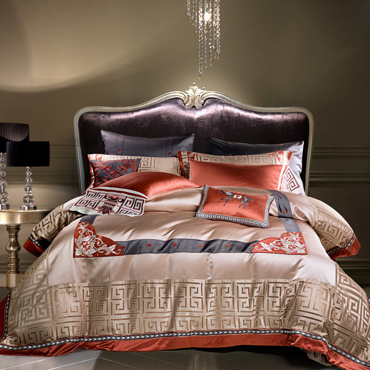 KTX-981459 Luxury Retro Black and Gold 120 Yarn-Dyed Jacquard Cotton Four-Piece Bedding Set