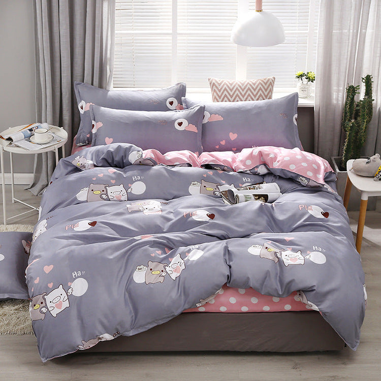 KTX-719315 Cute Cartoon 4-Piece Bed Sheet Set with Pillowcases and Quilt Cover