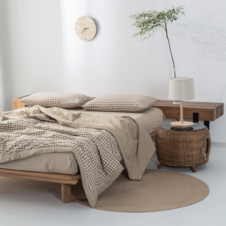 KTX-348691 Nordic Simple Plaid Cotton Four-Piece Bed Linen Set in Washed Cotton