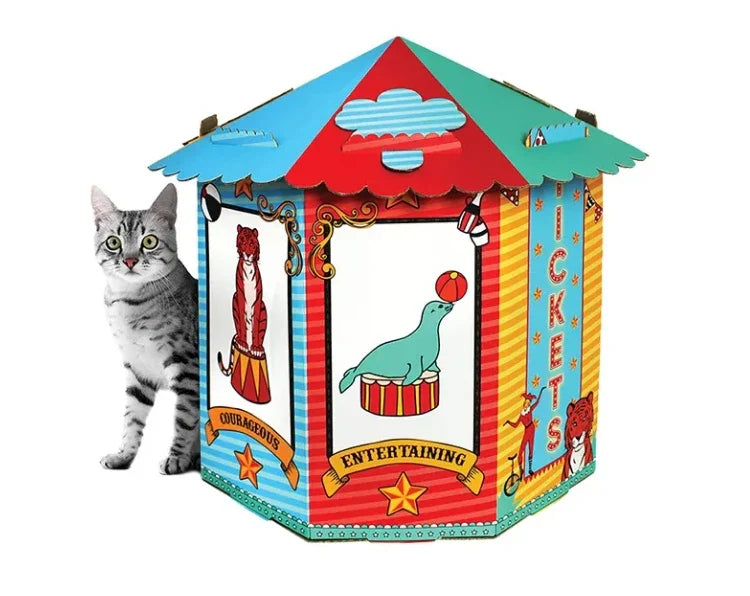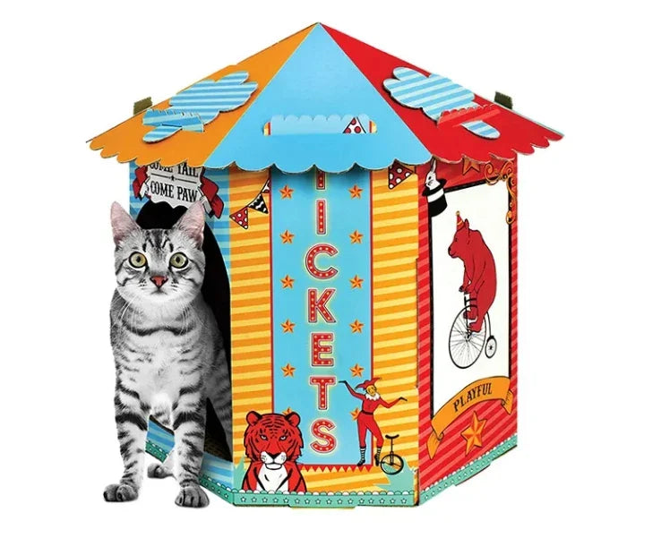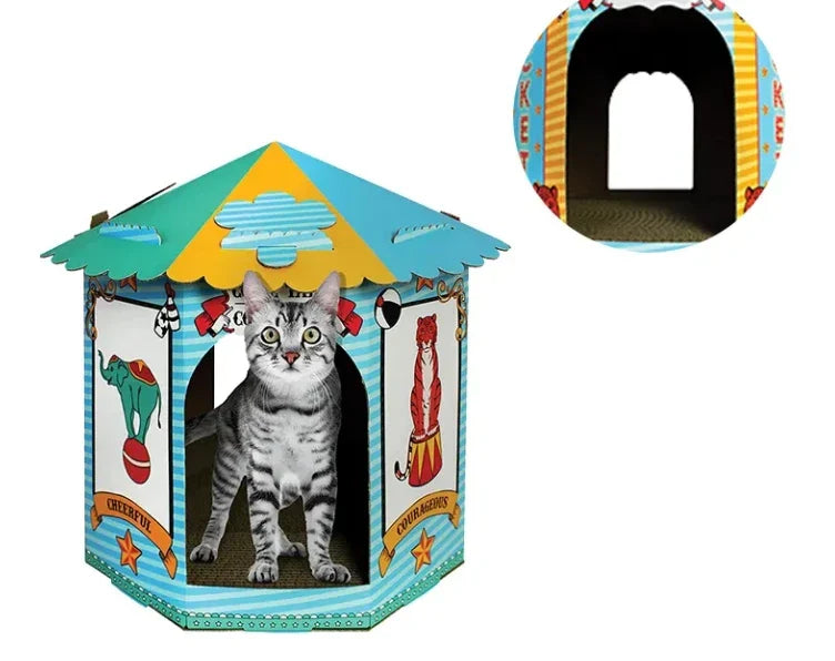Crafted from sustainable corrugated paper, the scratcher tent offers an eco-friendly solution for your cat's natural instinct to scratch. The textured surface is satisfying for your cat, promoting healthy claw maintenance while keeping their playful instincts engaged. This tent is not just a scratcher; it also provides a cozy hideaway for your feline friend to relax, explore, and take a break from the hustle and bustle of daily life.