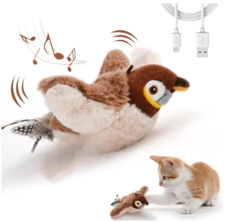 KTX-079507 Rechargeable Interactive Cat Toy with Touch Activation and Chirping Flapping Bird for Indoor Kittens