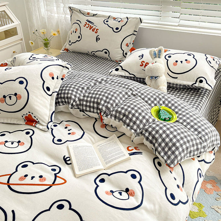 KTX-252691 Winter Coral Velvet Four-Piece Bedding Set with Fun Patterns and Soft Material