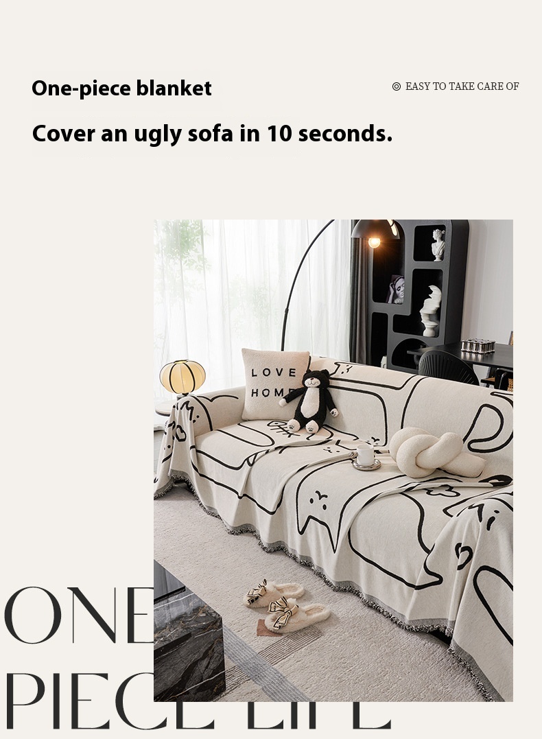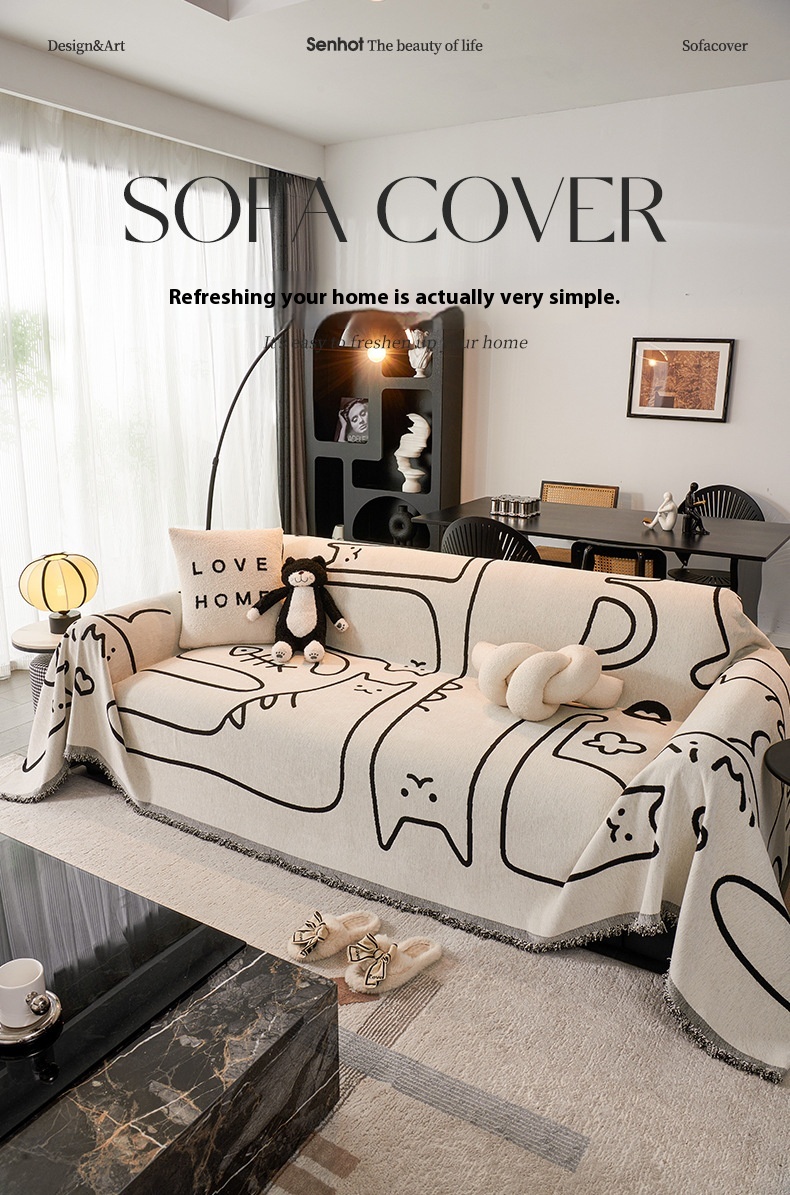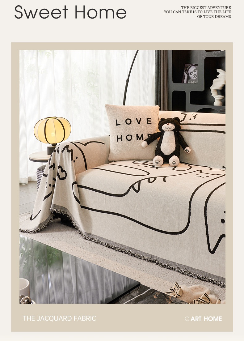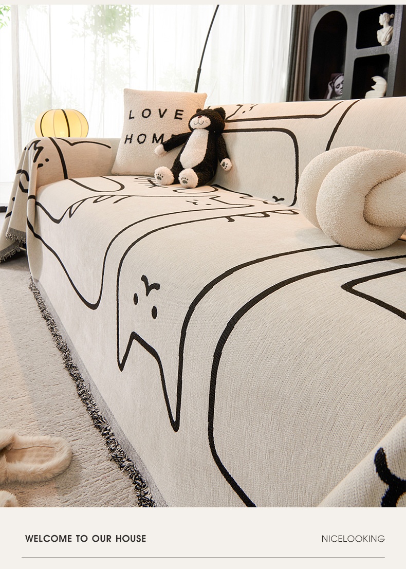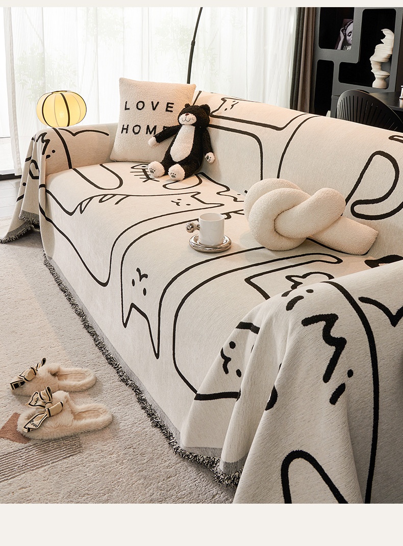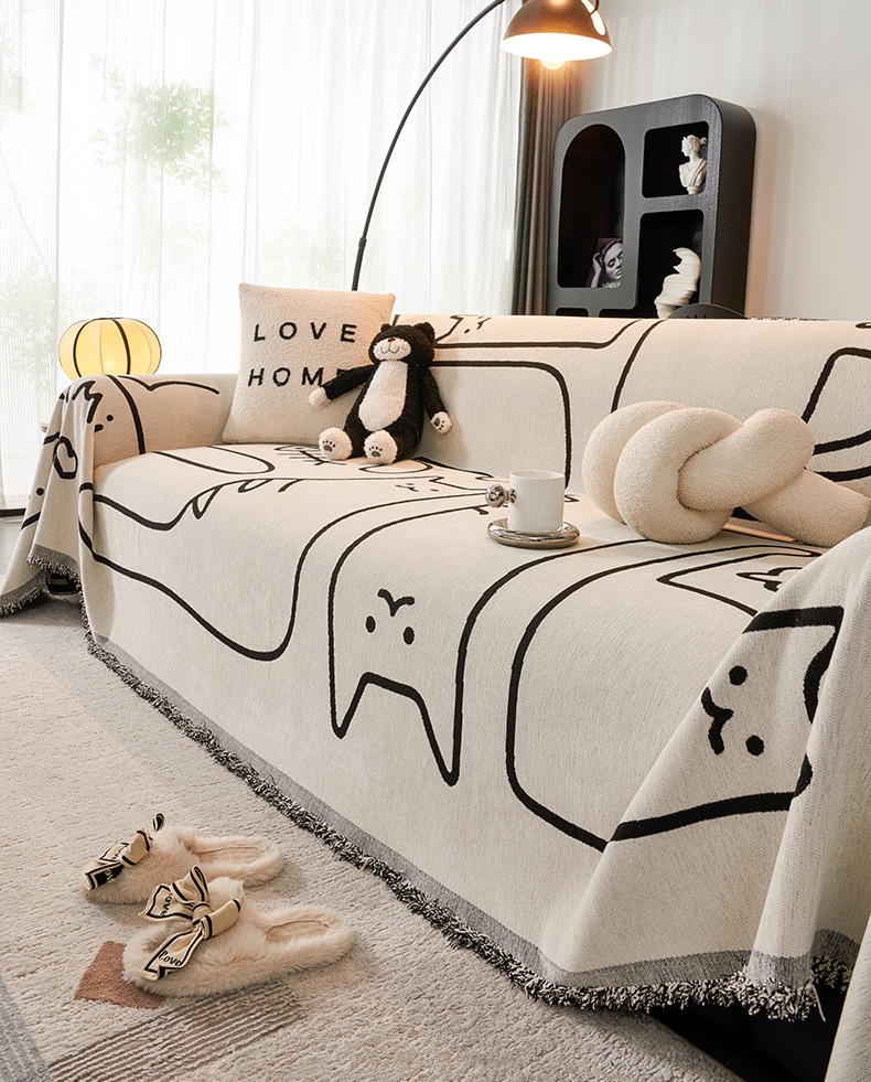 Available in various colors, such as lazy little meow in White and Black, pudding puppy, and purr puzzle, this sofa cover not only elevates the aesthetic of your furniture but also serves as a reliable dust cover and slipcover. The cloth liner style enhances durability, ensuring it withstands daily wear and tear.