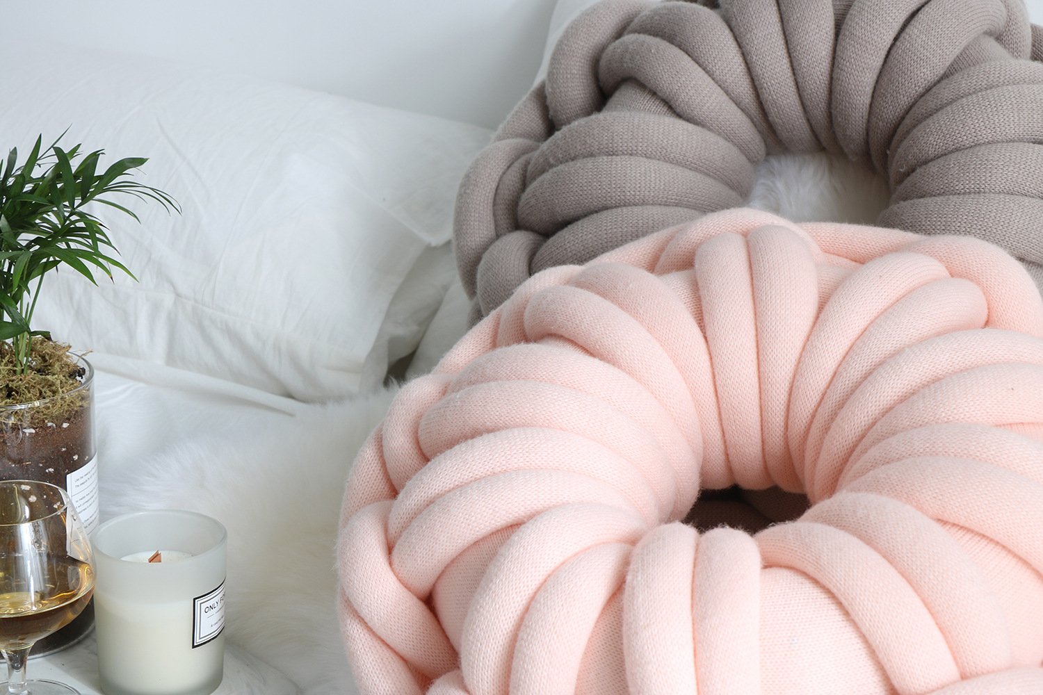 KTX-507027 Knotted Ring Donut Pillow - Solid Color Options in White, Red, Orange Powder, Sky Blue, Iron Gray, Camel Gray, 39cm Diameter