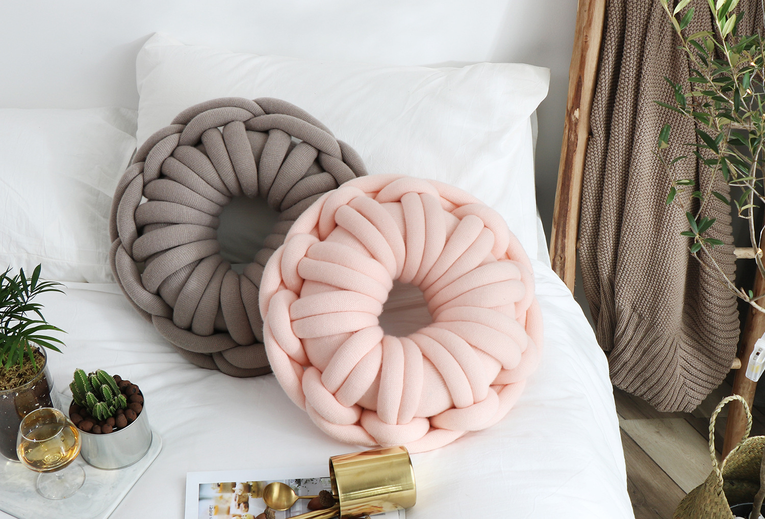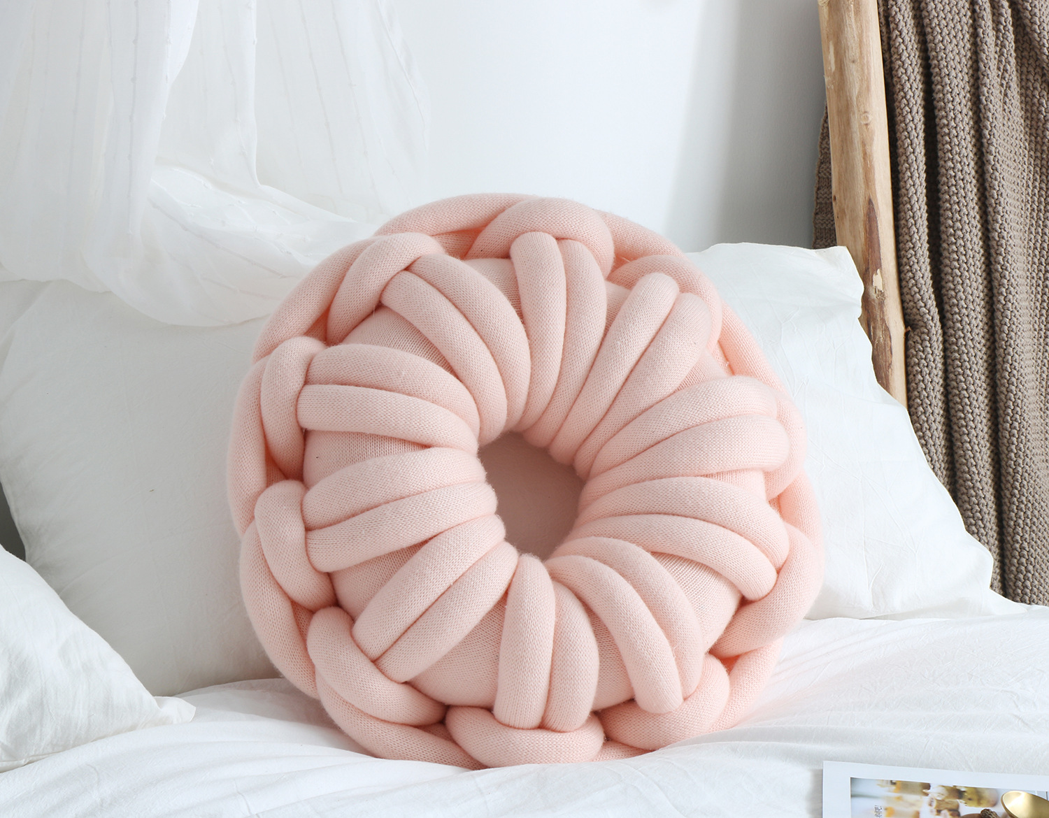Introducing the KTX-507027 Knotted Ring Donut Pillow, a versatile and stylish addition to your home decor that combines comfort with modern aesthetics. With a diameter of 39cm and a height of 12cm, this pillow provides ample support while adding a touch of personality to your space.