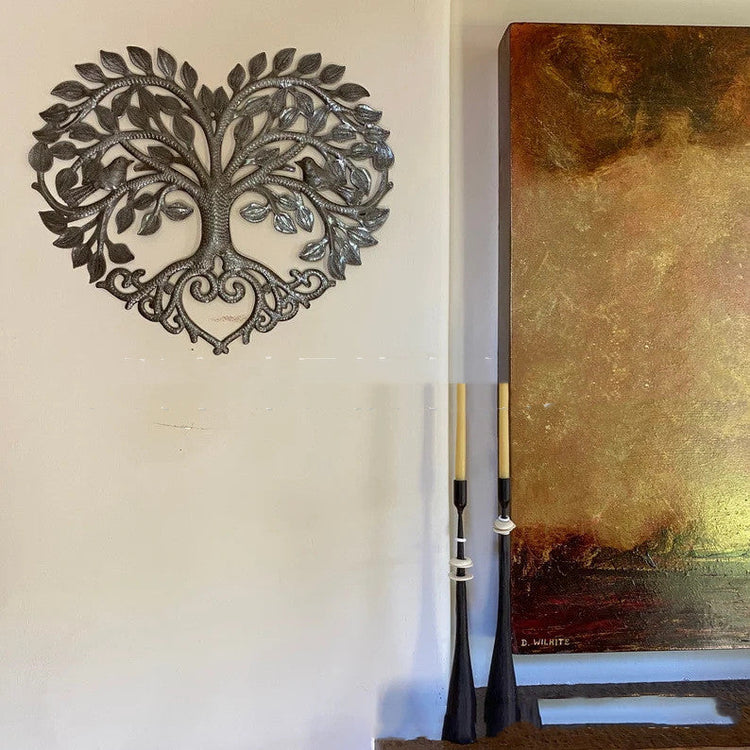 KTX-496851 Metal Heart Tree of Life Wall Art for Home Decoration - Modern Style, 28x25cm & 43x40cm