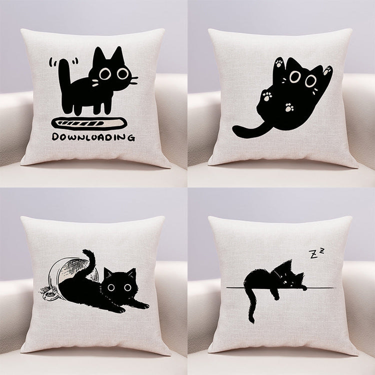 KTX-599635 Cute Cartoon Cheese Cat Pillow Cover in Various Black Cat Designs - Multiple Sizes Available
