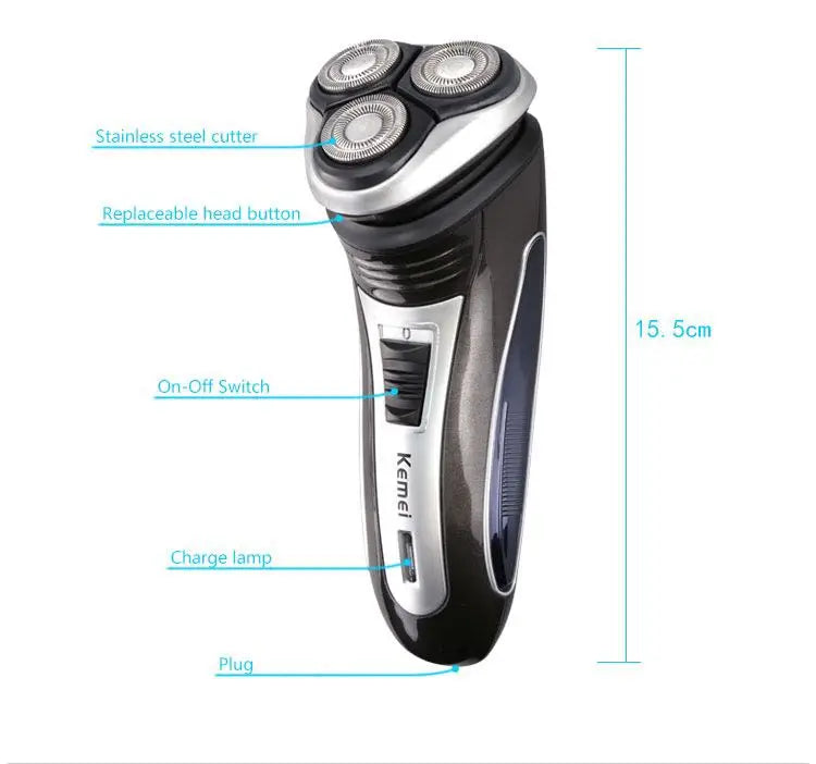 KTX-684947 Kemei KM-2801 Rechargeable Cordless Shaver for Men with 3 Rotating Blades
