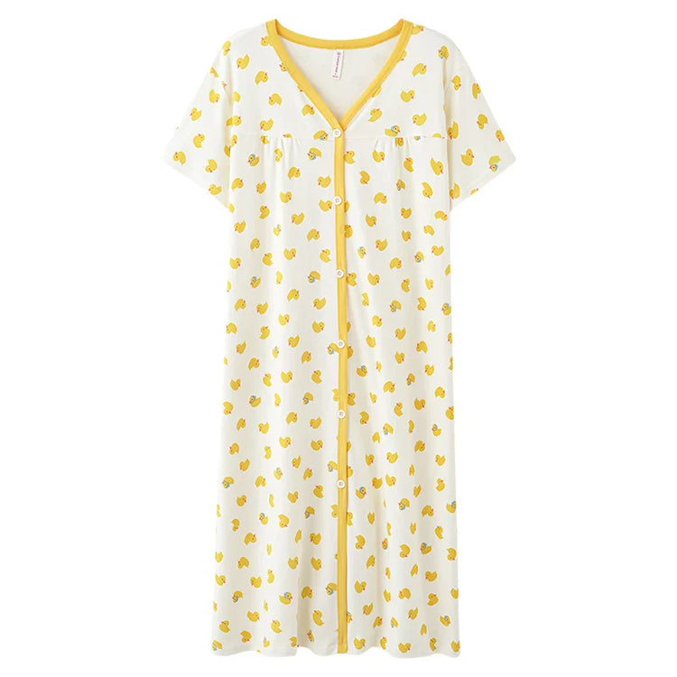 KTX-099795 Lovely Printed Women's Nightdress Cotton Short Sleeve Single Skirt 2024 Summer Loose Comfortable Cardigan Home Wear Wholesale
