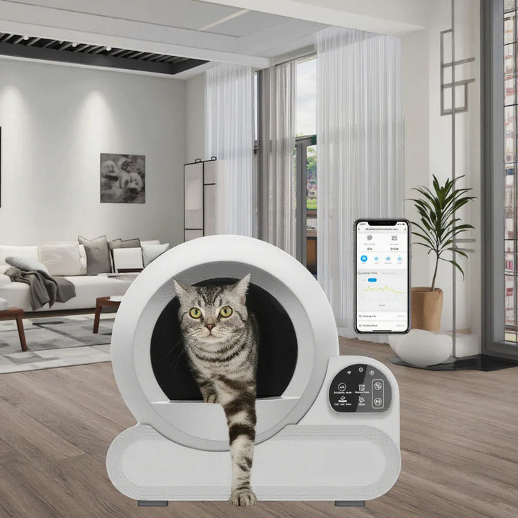 KTX-474643 Smart Wi-Fi Controlled Cat Litter Box with 70L Capacity, Automatic Cleaning, and Odor Control