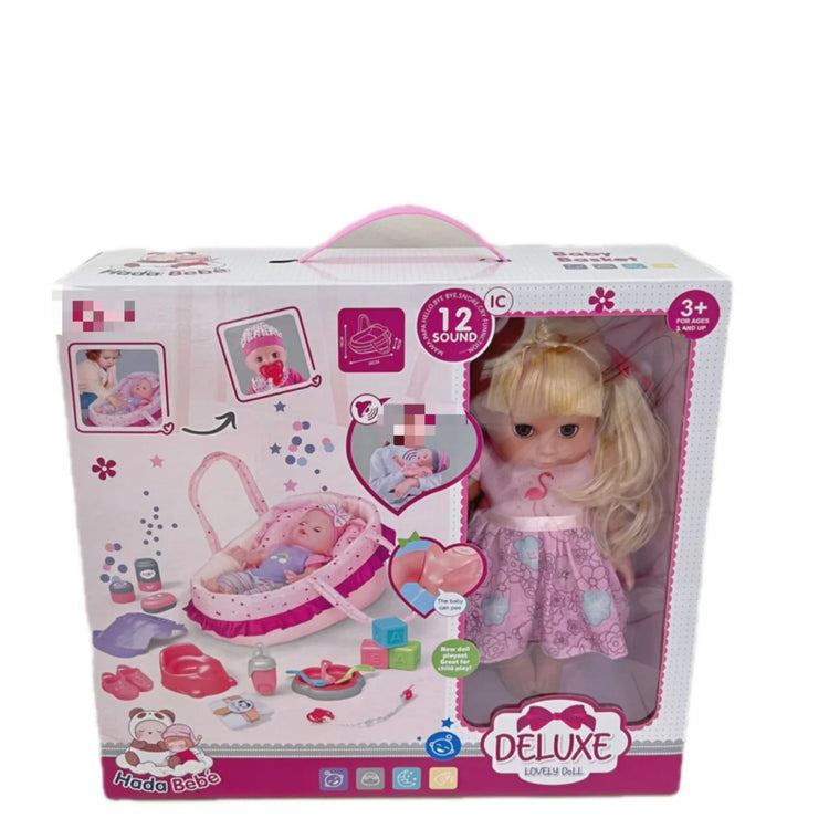 Crafted from high-quality vinyl and PVC, this 14-inch doll is not just a toy, but an opportunity for kids to explore caring and nurturing behaviors. The accompanying hand basket adds a unique element to playtime, allowing children to carry their doll with ease and style. This set is perfect for young caretakers eager to mimic adult roles and responsibilities in a fun and interactive way.