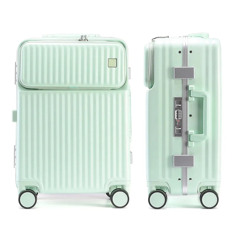 Choose the KTX-699667 Durable PC Aluminium Frame Trolley Carry-On Travel Suitcase with Front Pocket for a blend of functionality and elegant design that enhances your travel experience. It's not just a suitcase; it's a travel companion that keeps you organized and stylish on the go.