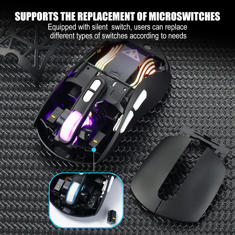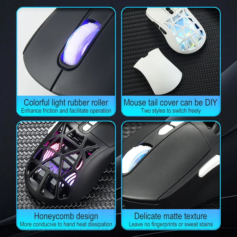 Introducing the JMT-284170 Lightweight Honeycomb Wireless Gaming Mouse, designed to enhance your gaming experience with innovative features and modern aesthetics. This gaming mouse incorporates a honeycomb structure for a lightweight feel, making it perfect for long gaming sessions without any fatigue.