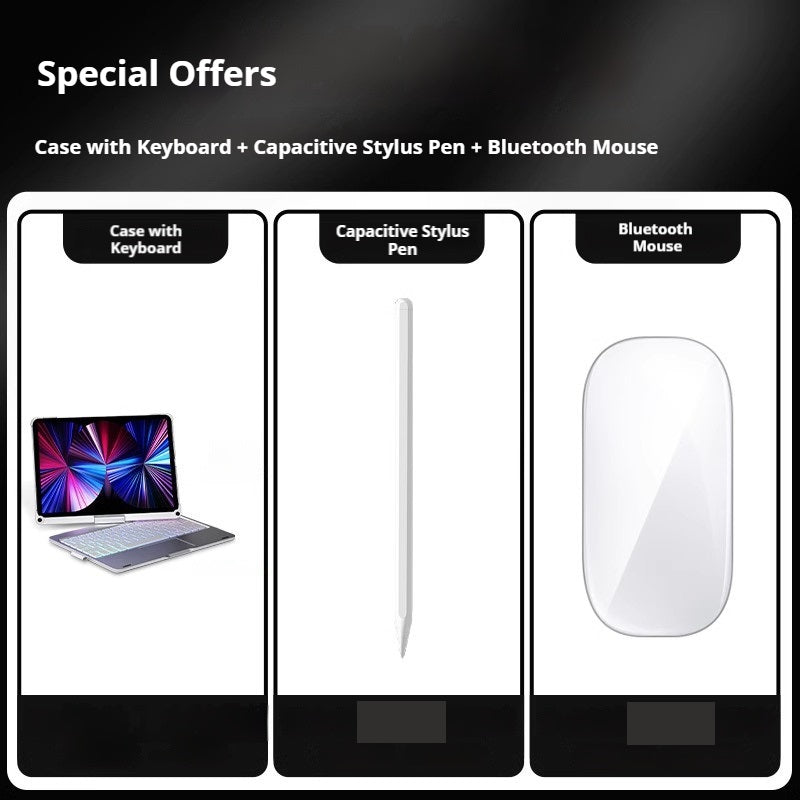 "Enhance your iPad productivity with our premium keyboard case bundle. For a limited time, receive two complimentary accessories: