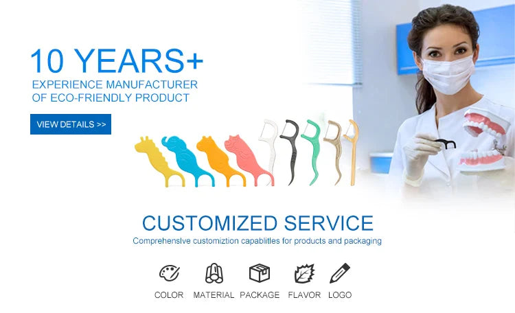 Introducing the KTX-373075 Biodegradable Children’s Animal Dental Floss Picks, a vibrant and engaging solution for your child's oral hygiene needs. Designed with colorful recycled plastic, these floss picks stand out not only for their playful animal themes but also for their commitment to sustainability. Each travel pack is filled with a variety of animal designs that make the often monotonous task of flossing much more enjoyable for kids.