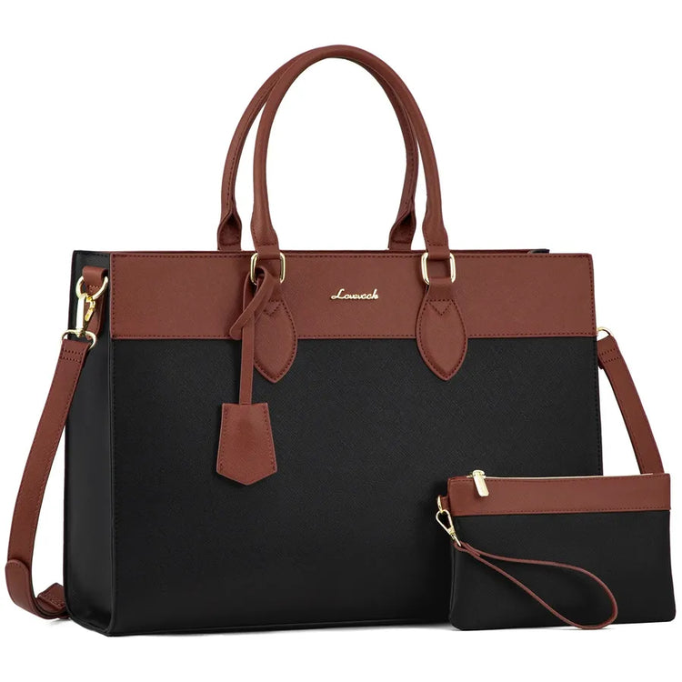 KTX-393555 Stylish 15.6 Inch Laptop Tote Bag for Women – Waterproof Leather Briefcase for Office and Work