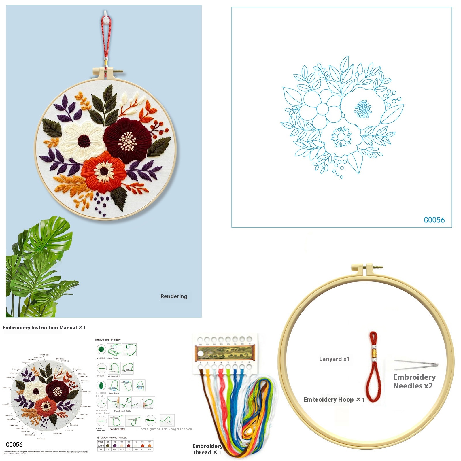 KTX-676563 DIY Embroidery Flower and Grass Material Kit for Creative Sewing Projects