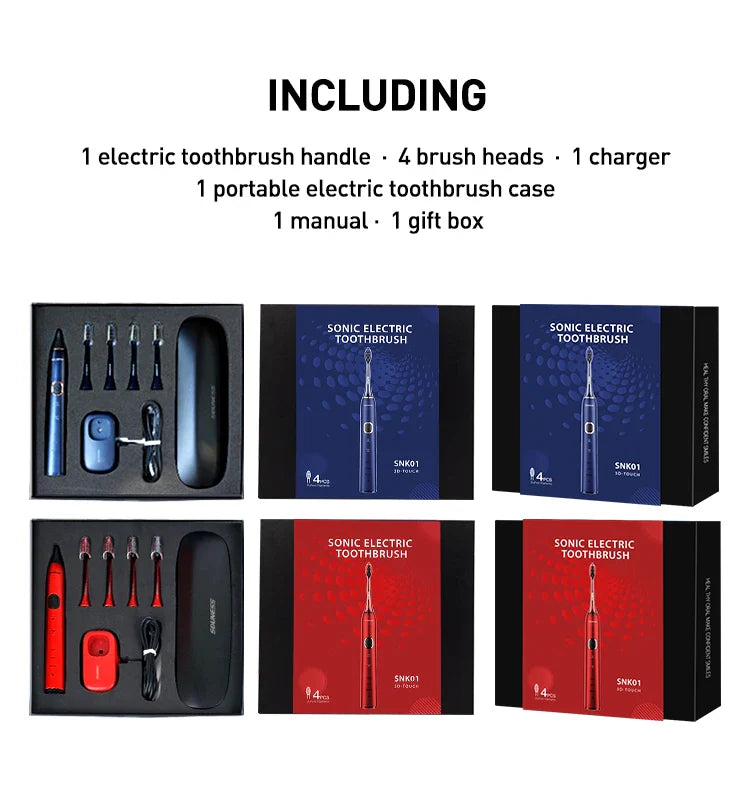 Powered by a robust 750mAh battery, this toothbrush offers long-lasting performance on a single charge. With an easy-to-use 5V-1A charging system, you can conveniently keep your toothbrush ready for daily use. Each purchase includes one electric toothbrush handle along with four replacement brush heads, ensuring you have everything you need for continuous oral care.