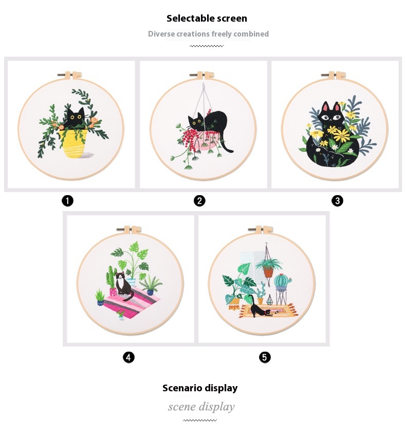 Color: 361 cat embroidery kit, 362 cat embroidery kit, 363 cat embroidery kit, 364 cat embroidery kit, 365 cat embroidery kit