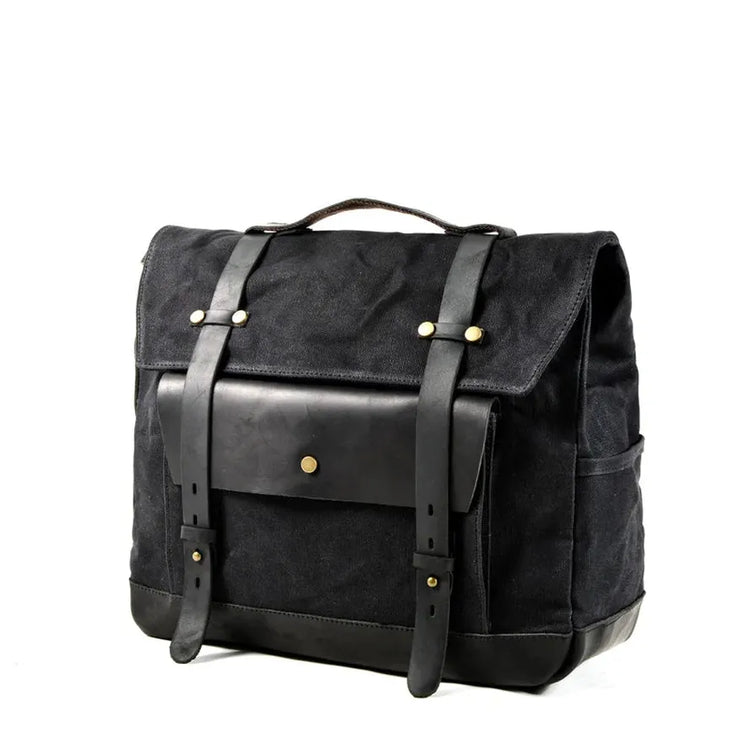 KTX-581587 Waterproof Motorcycle Side Car Head Car Lock Bag - Heavy Duty Waxed Canvas and Leather Riding Rear Seat Messenger Bag