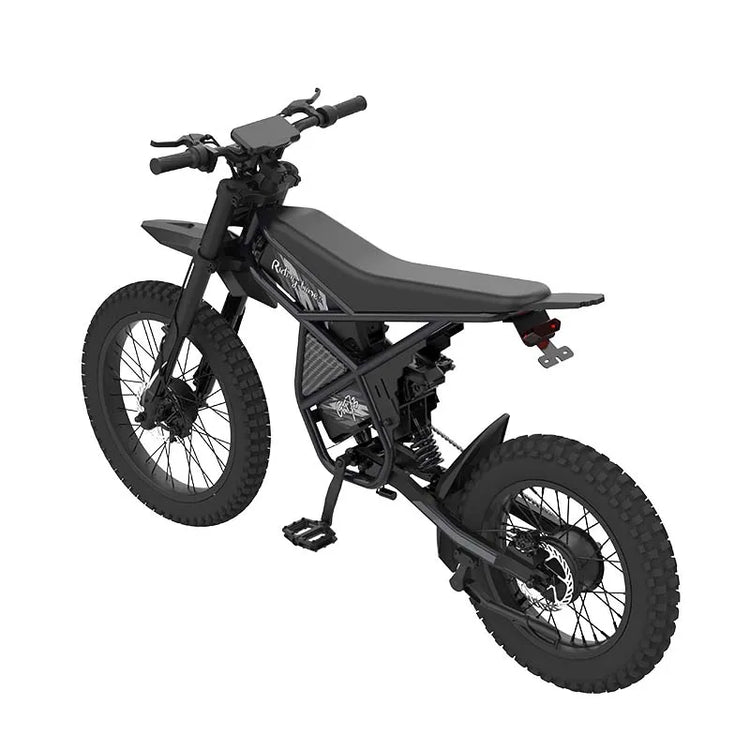 Designed for off-road enthusiasts, this electric bike features 25-inch tires with an off-road width of 70/100-19, coupled with advanced shock absorption. The front hydraulic double wishbone suspension and rear suspension system provide a smooth ride over bumps, while the off-road front fork suspension enhances overall comfort and handling.