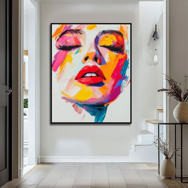 This vertical masterpiece features a captivating abstract representation of the human face, perfect for those who appreciate contemporary artistry. With an unstretched frameless design, it allows for versatile display options, enabling you to customize how you showcase this exceptional piece within your home.