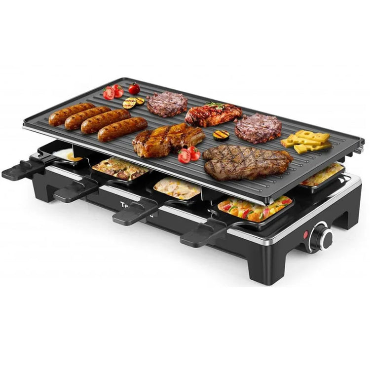 KTX-777683 1500W Adjustable Electric BBQ Grill with 8 Non-Stick Indoor Raclette Pans