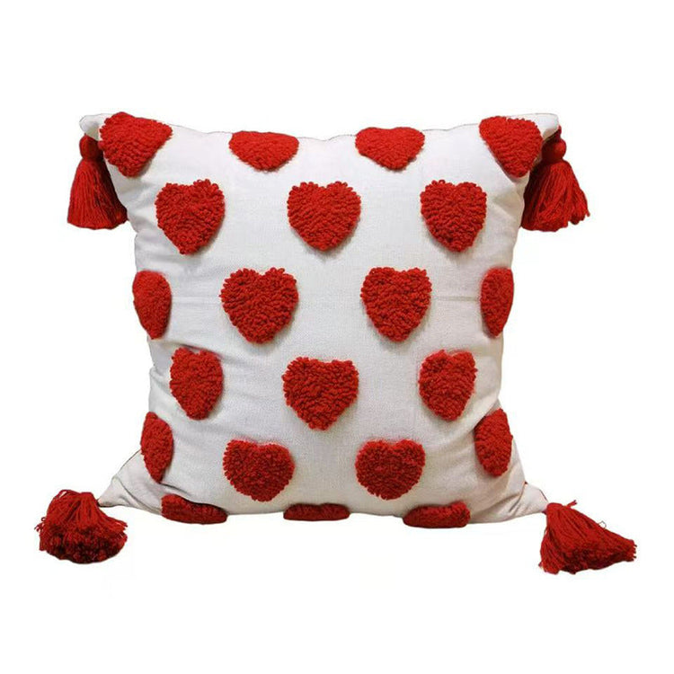 KTX-006227 Valentine's Day Red Linen Cushion Cover 45x45cm for Bedroom Decor