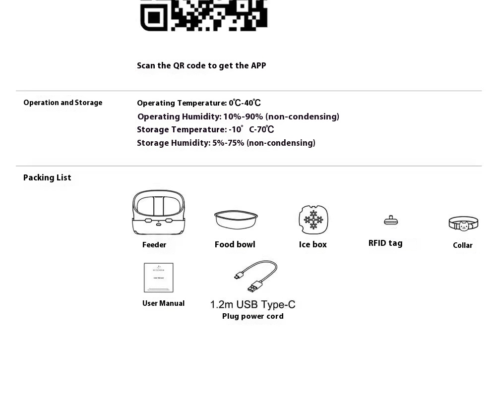 Feeding device, food bowl, ice box, collar, instruction manual, charging cable * 1set