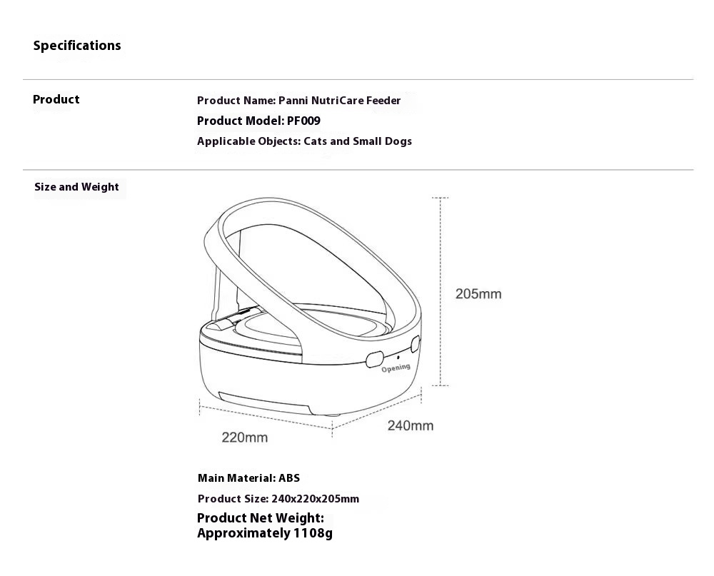Introducing the KTX-941843 Smart Pet Feeder, designed with your furry friends' needs in mind. This feeder combines innovative technology with practical features to enhance your pet care routine. Its elegant Paini color and durable plastic material offer a stylish addition to any home.